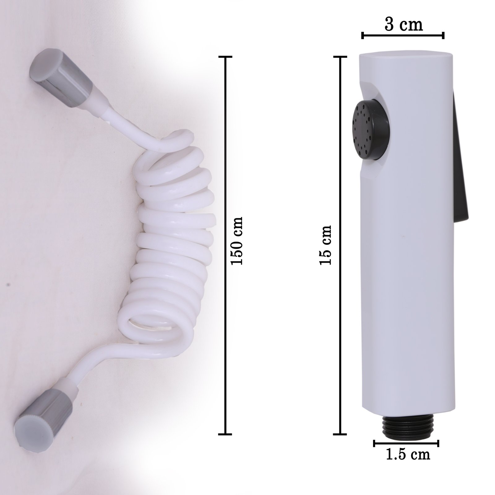 The high-quality PU (polyurethane) pipe is flexible, kink-resistant, and easy to maneuver, offering maximum comfort for daily hygiene and cleaning tasks. The modern white and black dual-tone design brings a fresh, contemporary look to your bathroom setup.