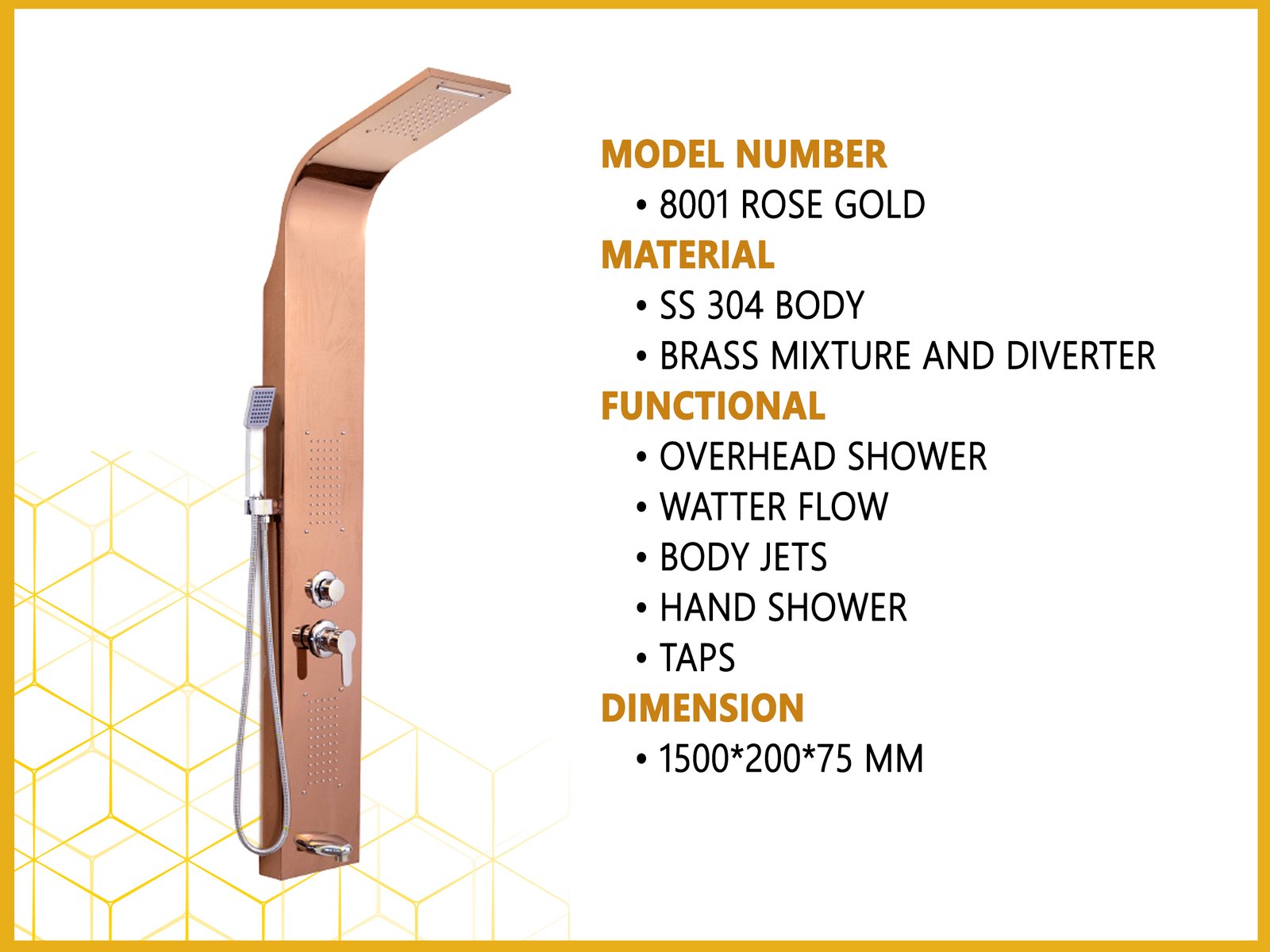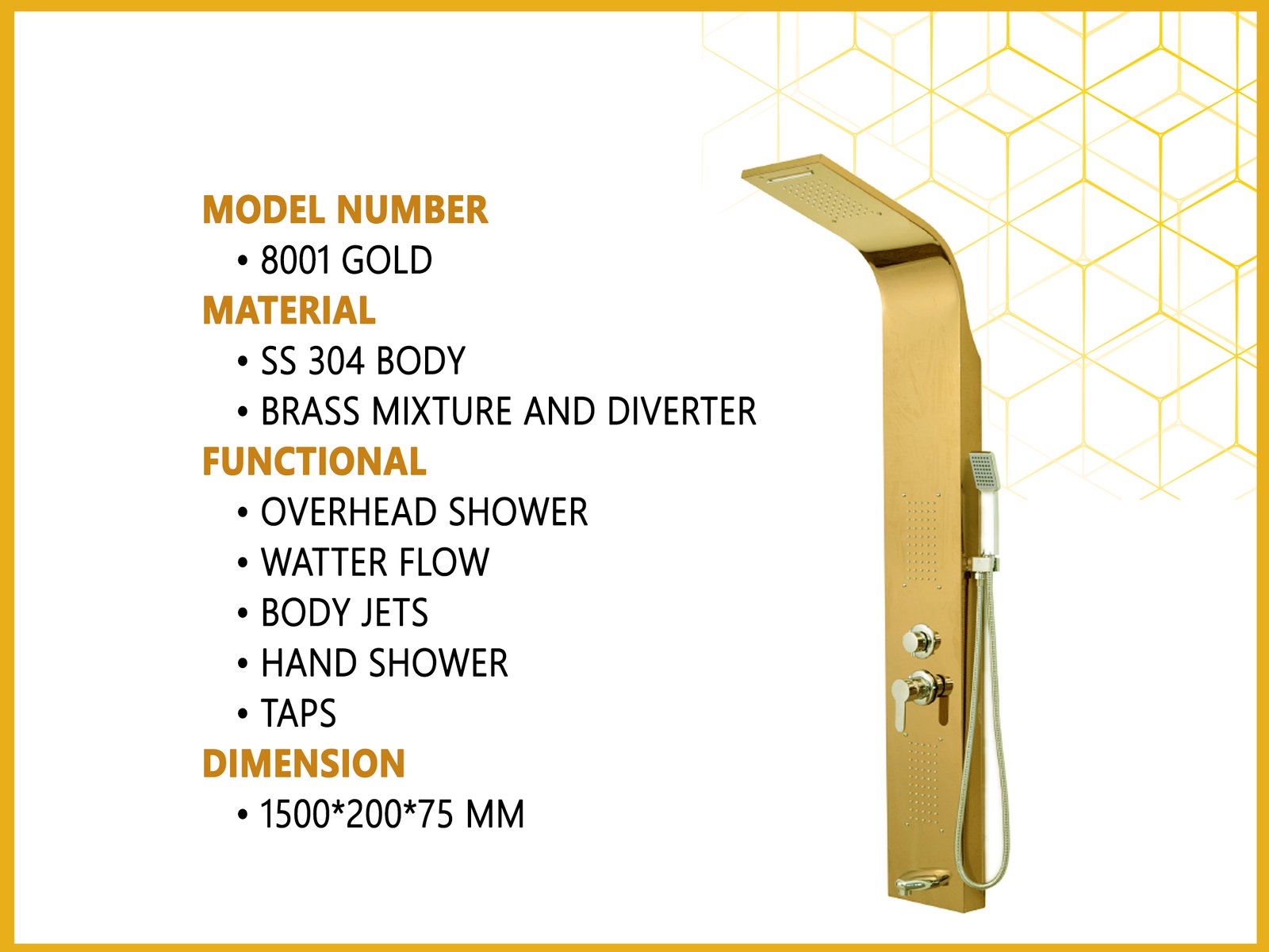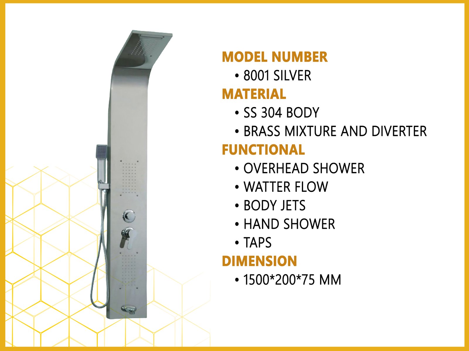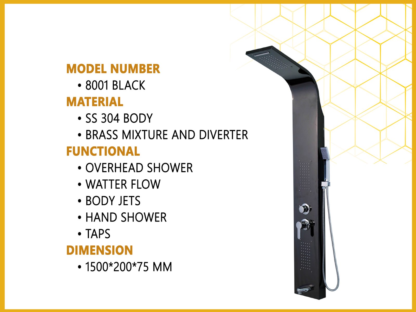 Shower Panel Non led Model 8001